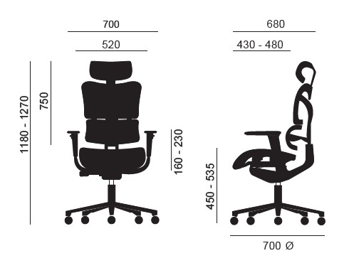 – Asiento: El asiento tiene un diseño ergonómico con forma convexa para favorecer la circulación sanguínea en las piernas. Está fabricado con un asiento interior de polipropileno reforzado recubierto con espuma de poliuretano de alta densidad y resistencia inyectado en molde. Tapizada en tela flex.