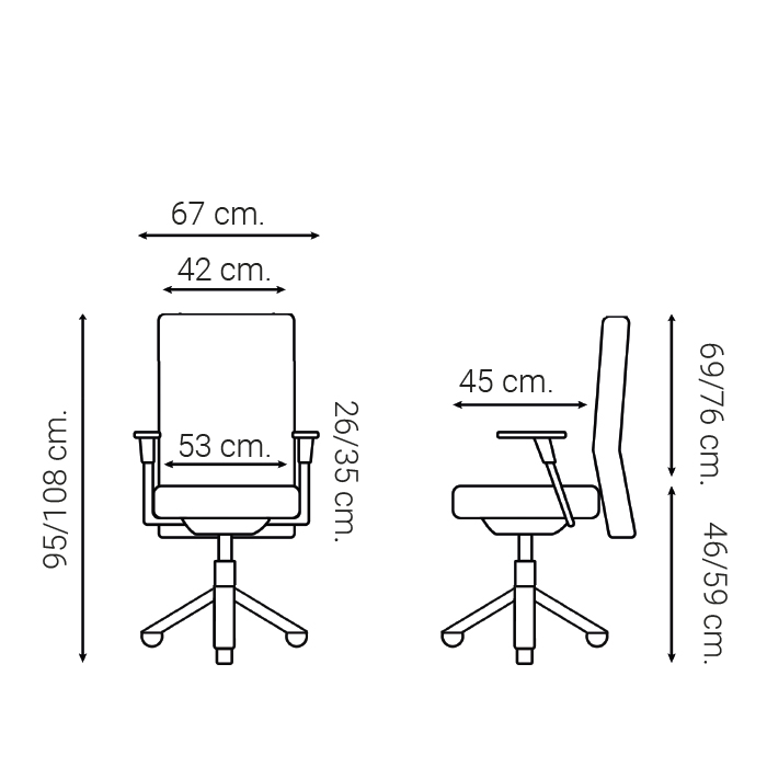 -Respaldo regulable en altura por cremallera. Apoyo lumbar regulable en profundidad.