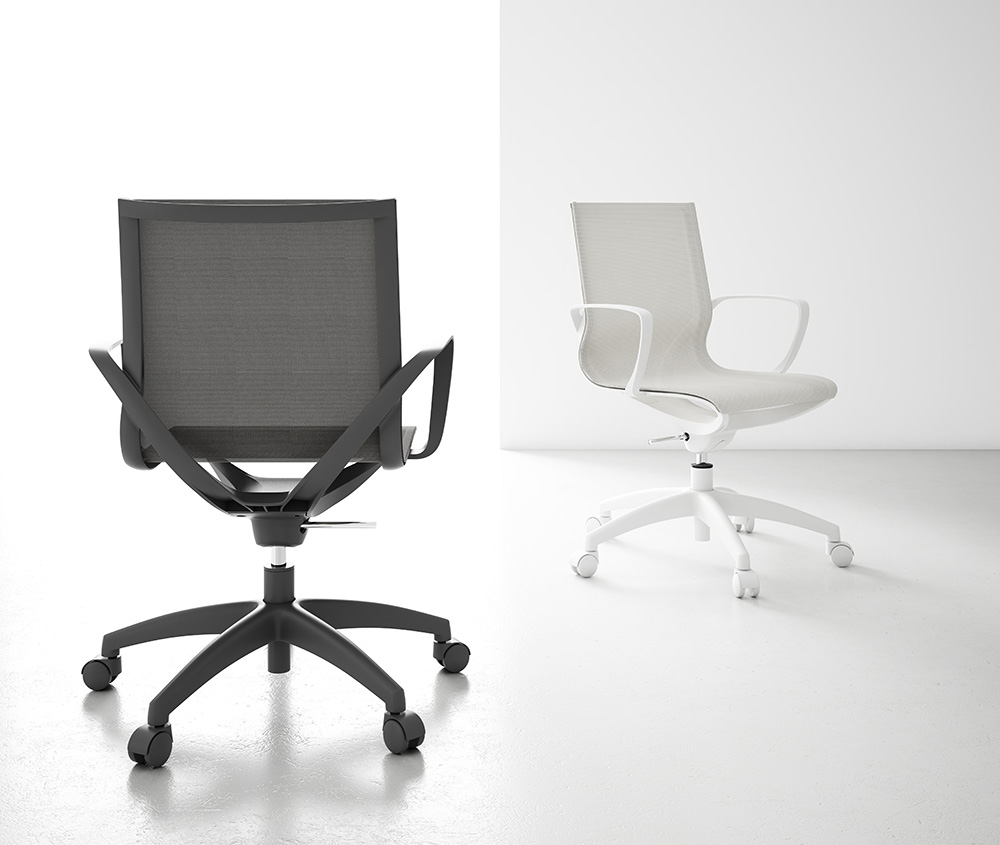 – Una silla ergonómica con estructura inyectada en nylon y fibra de vidrio.